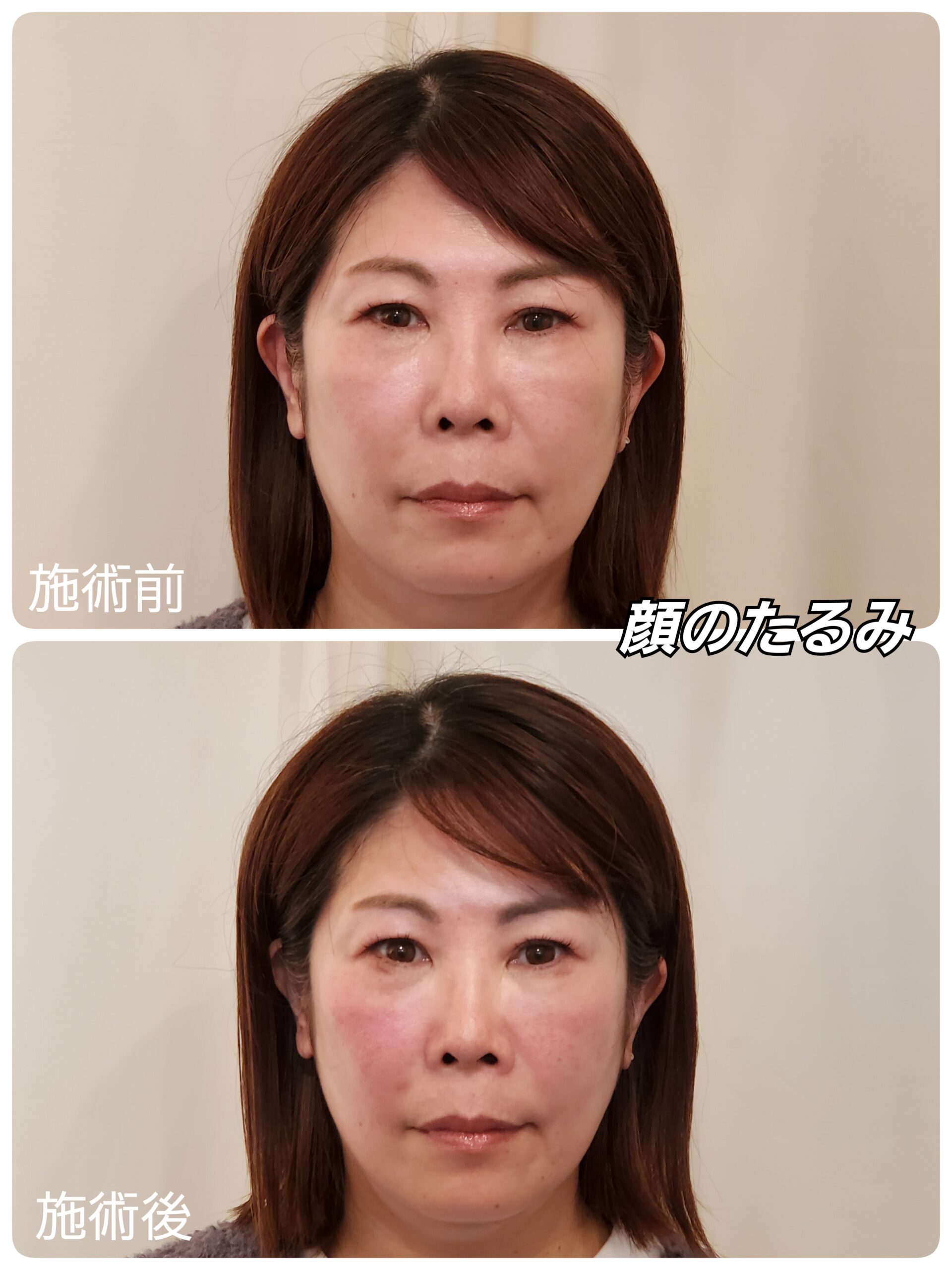 顔の下がりと目の下のもたつきを解消したい!というご要望。
