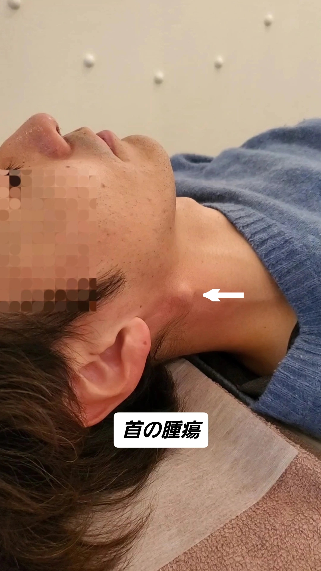 Tさん(30才)は首に直径約1.3㎝、厚み約1㎝の腫瘍があり来院。
