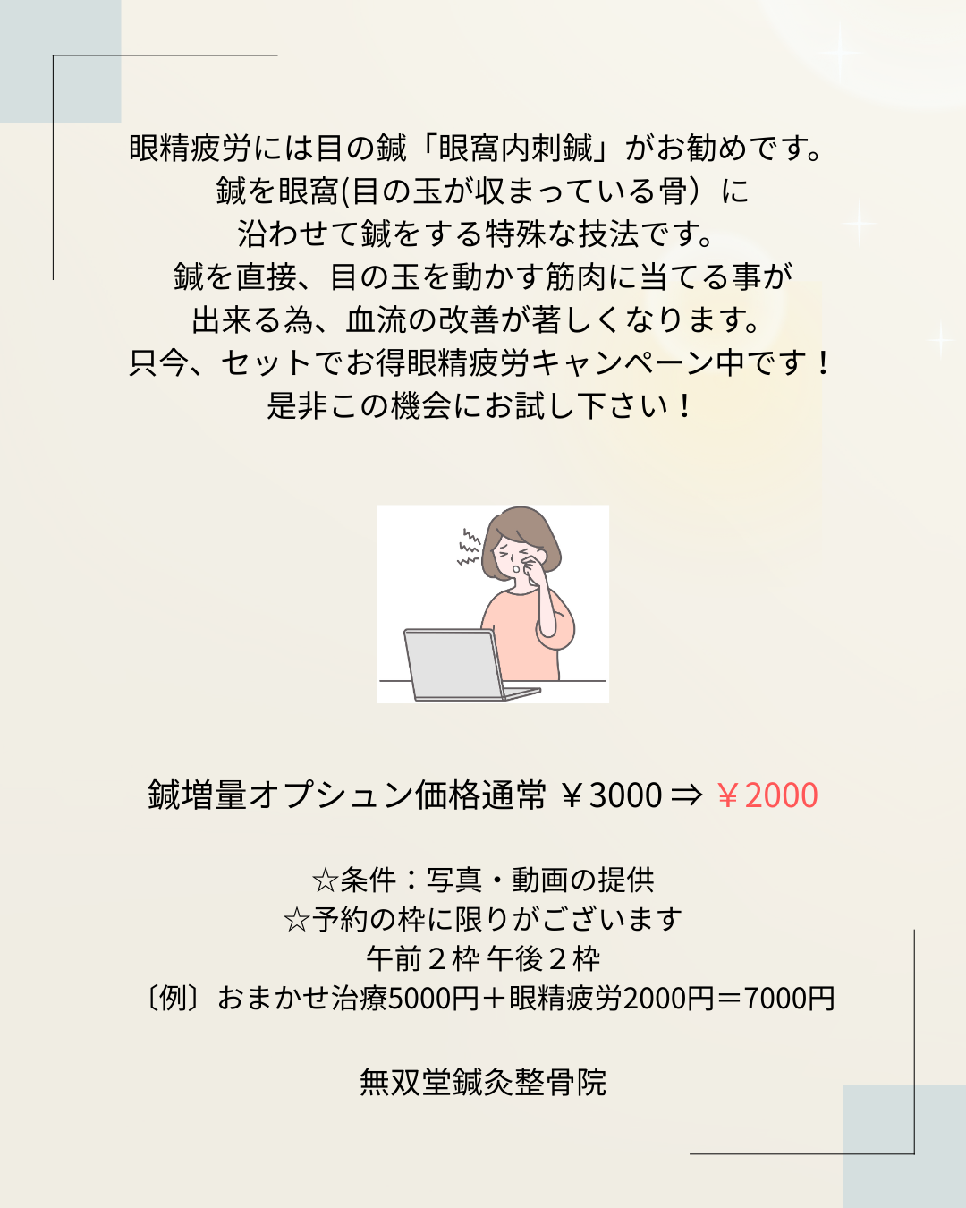 セットでお得な眼精疲労治療 -1000円❗