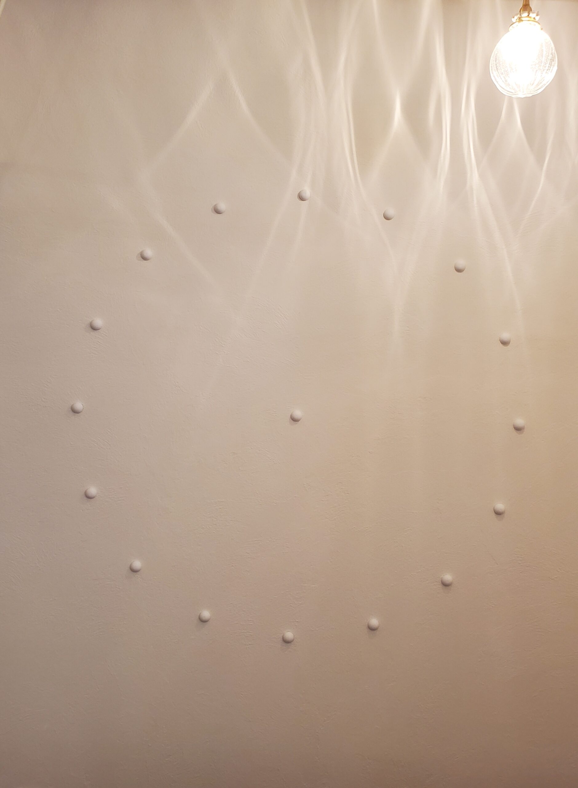 そんな経緯があり、麻炭漆喰の隠し文字としてSさんに墨で「サムハラアチマリカム」を神代文字で書いて頂きました。
